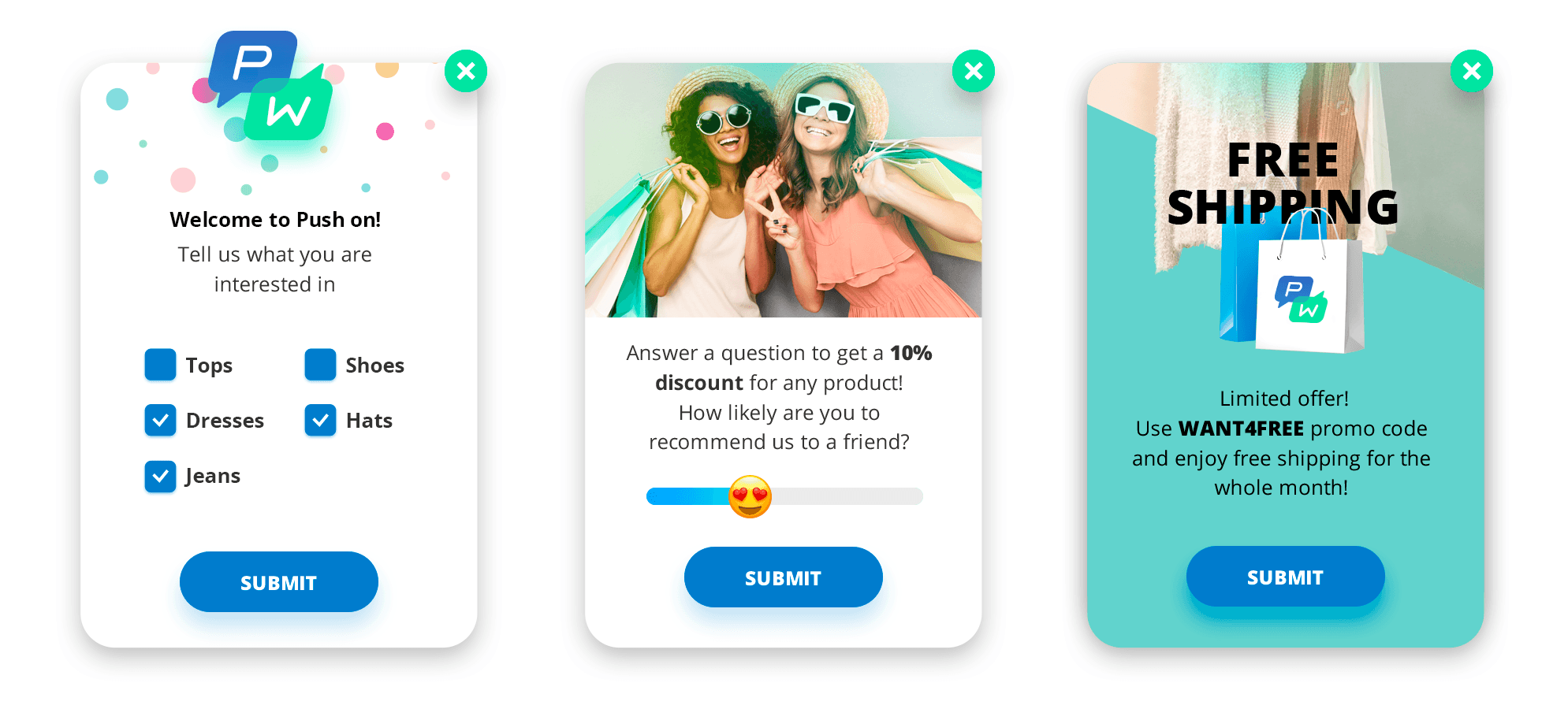 Now here’s some good news: most of the in-app messages shown are easy to create with no code or designer skills! Sounds unbelievable? See for yourself — try the enhanced Pushwoosh In-App Editor.