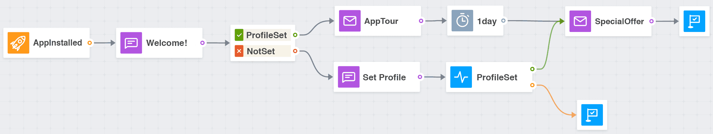 Example of an onboarding message flow in Customer Journey: