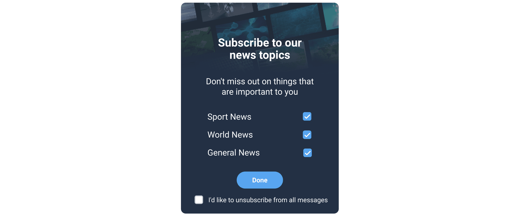 To get more subscribers, you should explain the benefits of receiving your push notifications by showing an in-app message. Also, allow users to choose the topics they want to be updated on. This way, they will see the value of your messages and know that they won’t be spammed with irrelevant content.