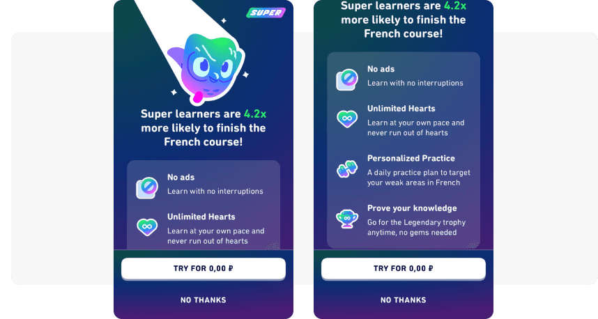 Live example: Duolingo, a language-learning app.
