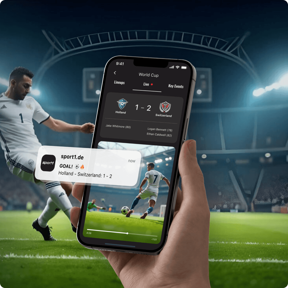 Stream real-time scores to the lock screen with iOS Live Activities and ultra-low latency.